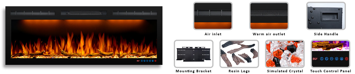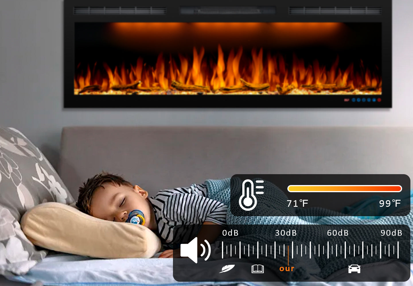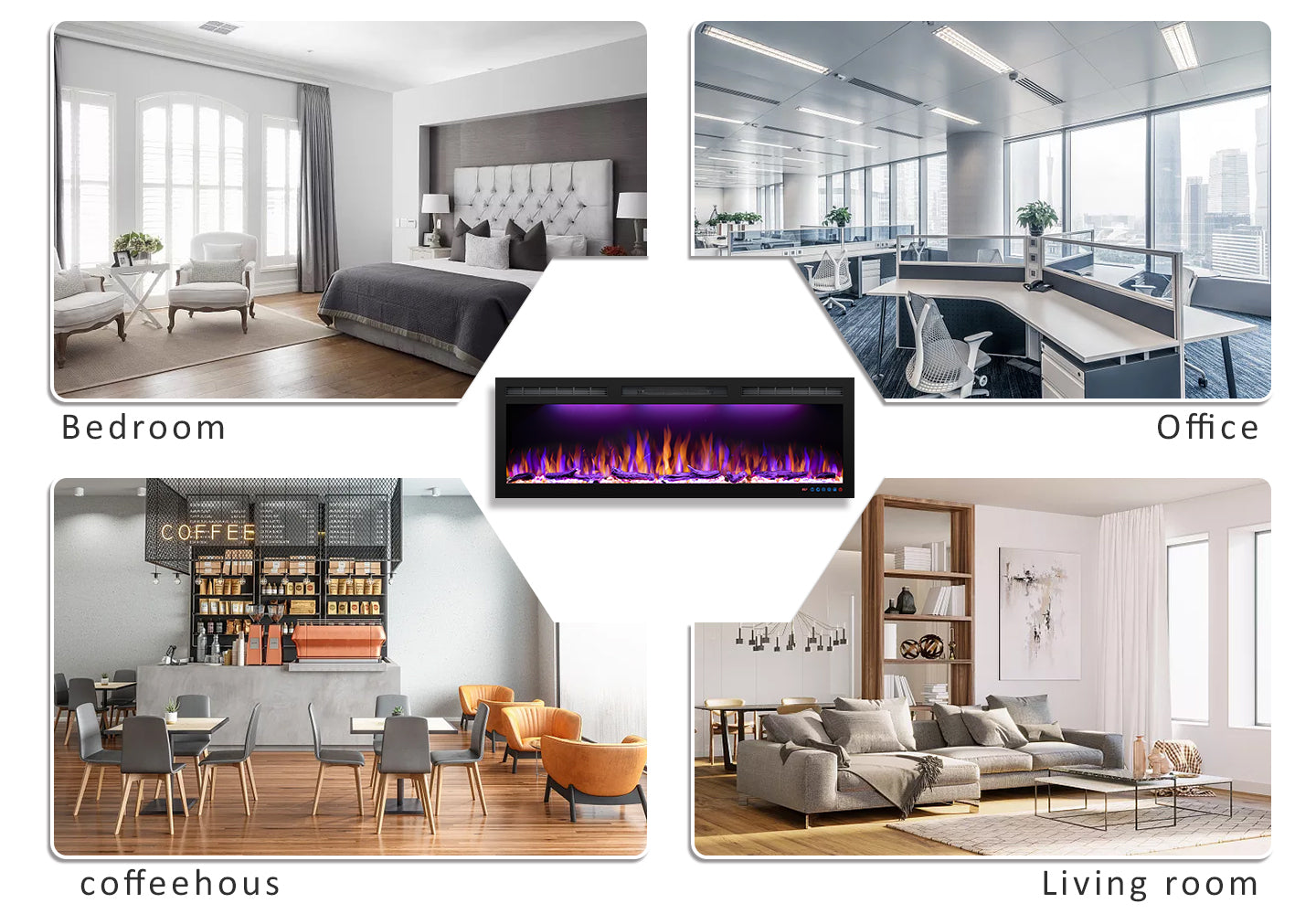 The BIG series of 40inch electric fireplace by Valuxhome combines modern beauty with practical design, the exterior features an oversized black LED screen and flexible control panel, and the interior of the fireplace features state-of-the-art heating features and authentic flame effects, aiming to create the most suitable heating furniture and interior decoration for each home. The fireplace can be recessed into the wall or mounted on the wall, either way you can choose.The fireplace by Valuxhome is also oil-free and gas-free, using real flame and electricity to power, taking the most safe and green environmental protection technology, to create a comfortable and secure home environment.