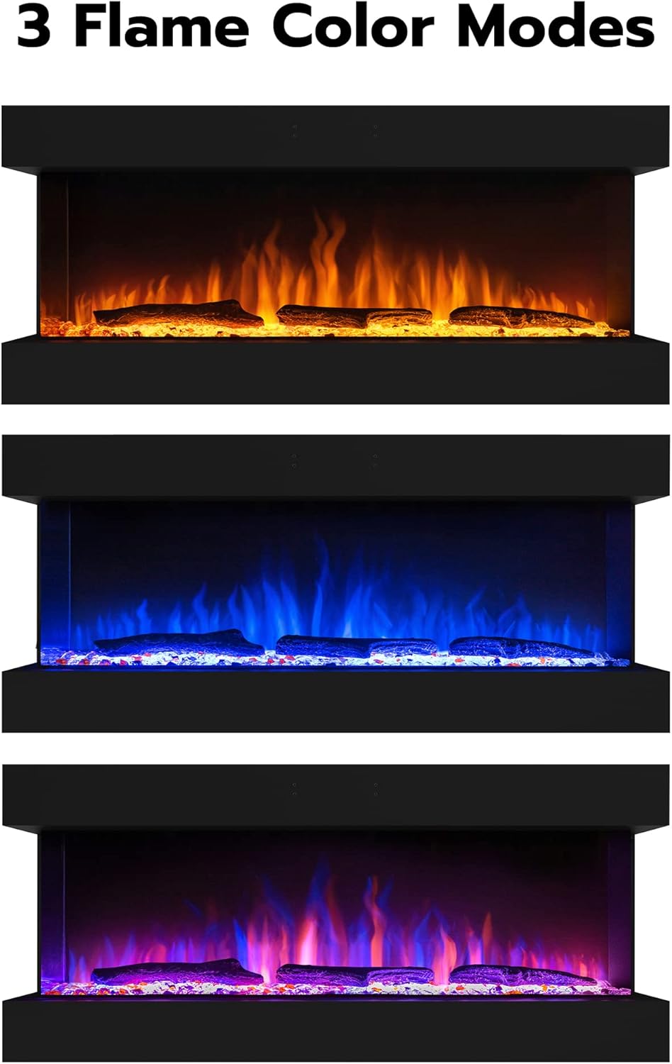 3-Sided Electric Fireplace, 54 Inch Recessed and Wall Mounted Fireplaces, Overheating Protection, Remote, Log & Crystals-TS50