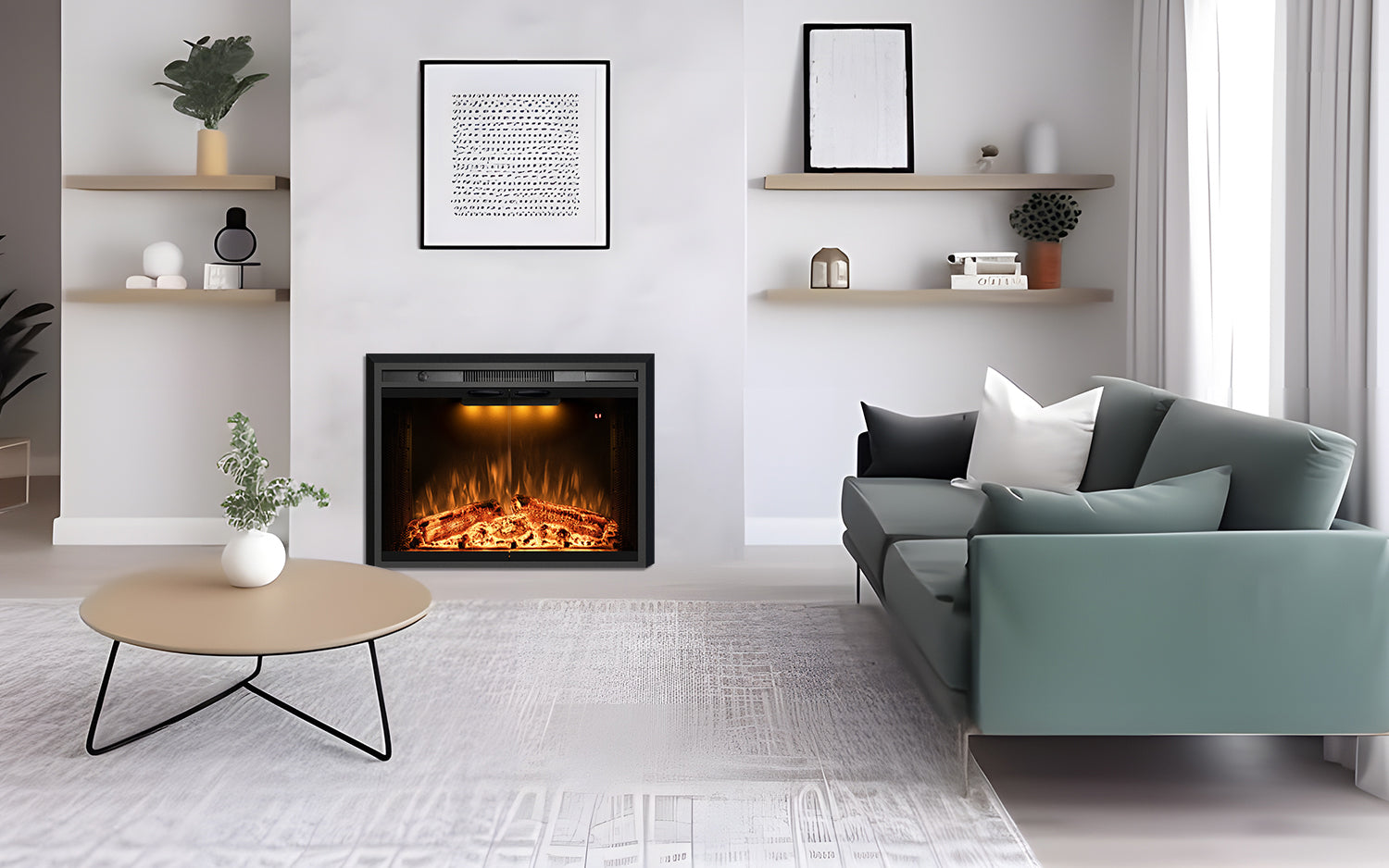 30inch Recessed Electric Fireplace with Adjustable Top Light&Flame Speed
