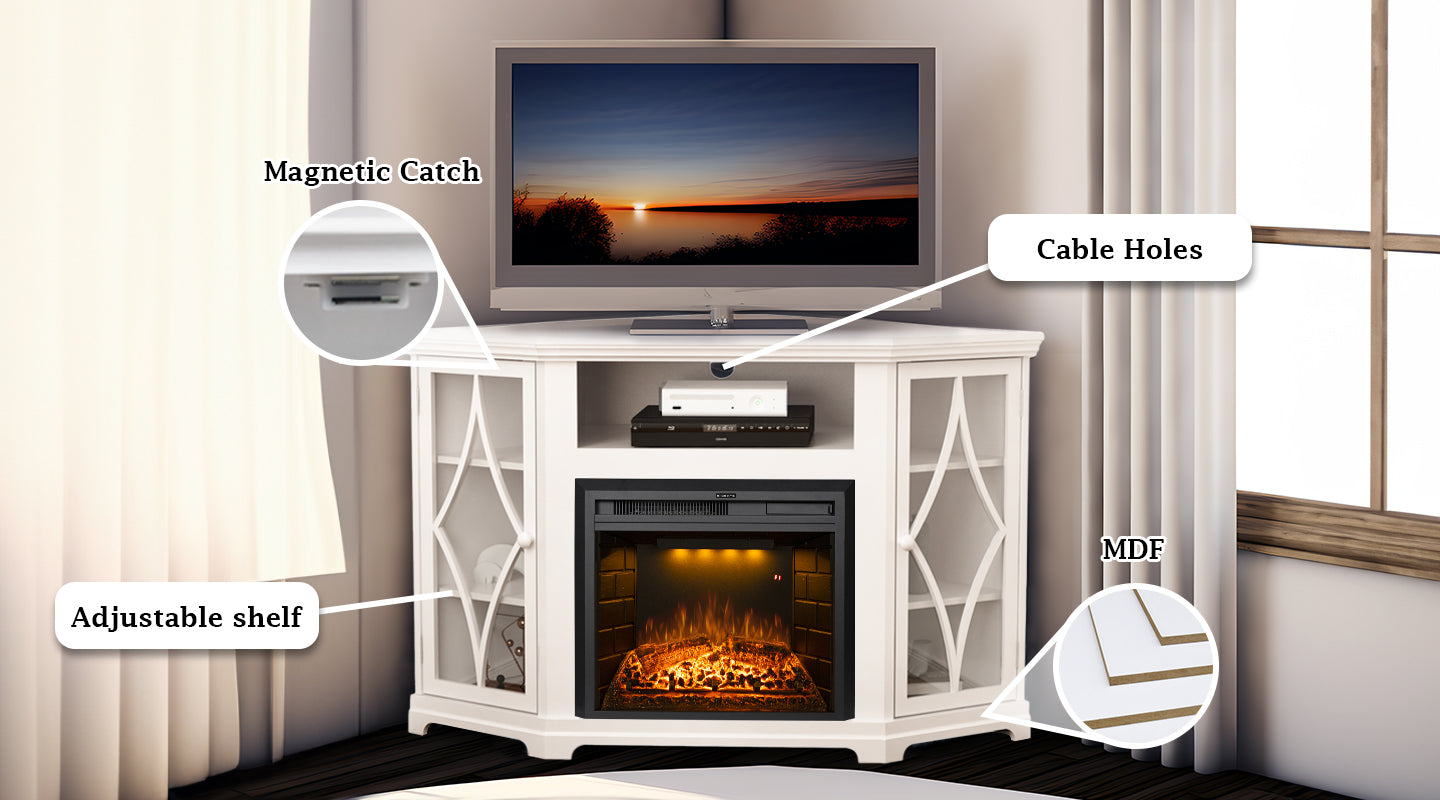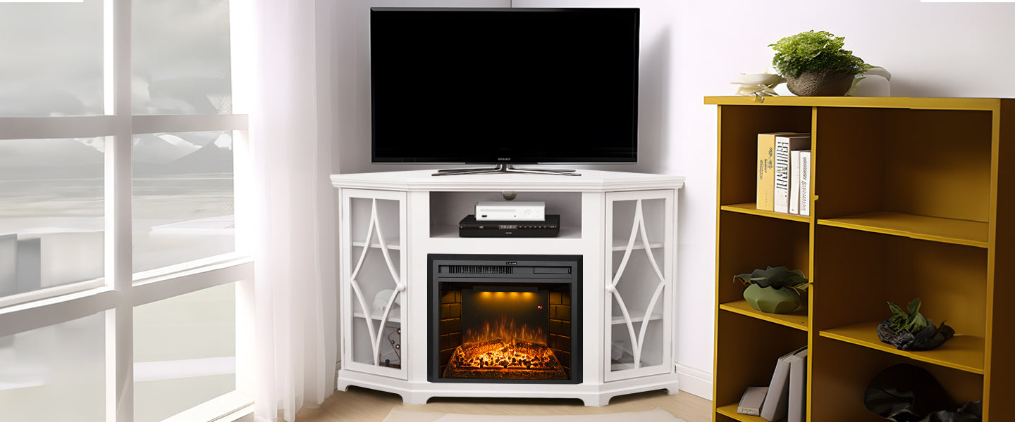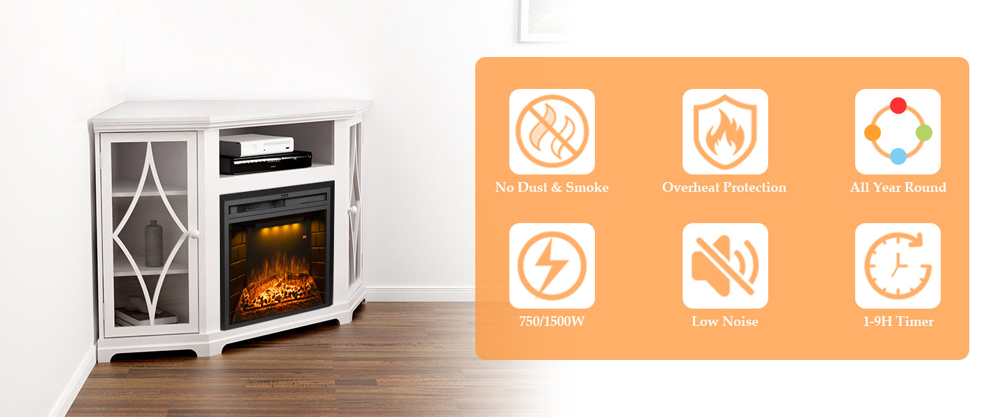 The fireplace equip has 3 color of top light, 5 brightness of flame, 1-9H timer.