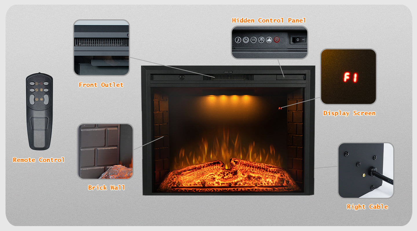 The fireplace equip has 3 color of top light, 5 brightness of flame, 1-9H timer etc.