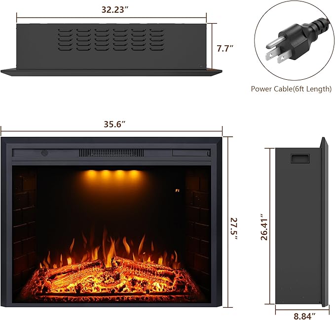 Recessed&Built in Wall Electric Fireplace with Adjustable Top Light&Flame Speed-EFT