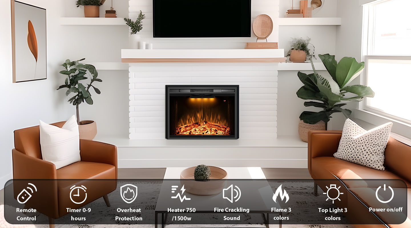 Easily operate all functions at will by remote and panel control. Embedded 0-9h timing device will shutdown the fireplace heater when reach the set time, get rid of the worries about safety and waste. Low noise with convenient operation offers a comfortable environment for resting.