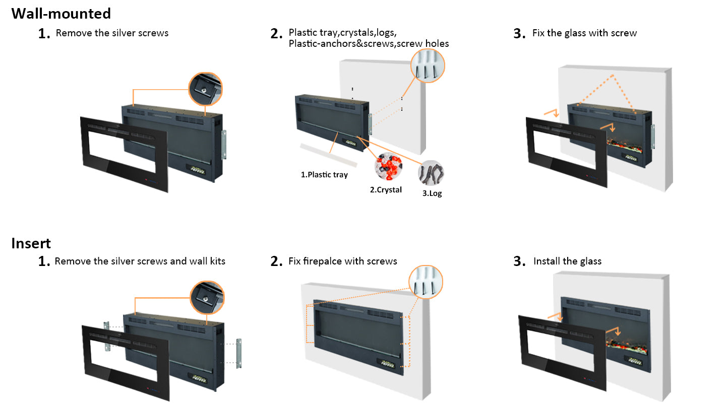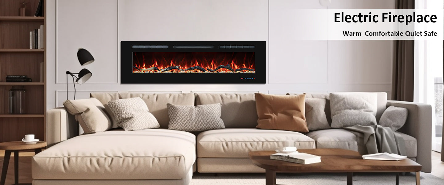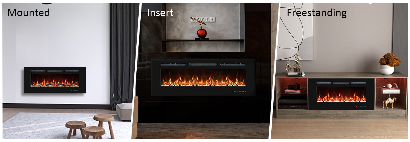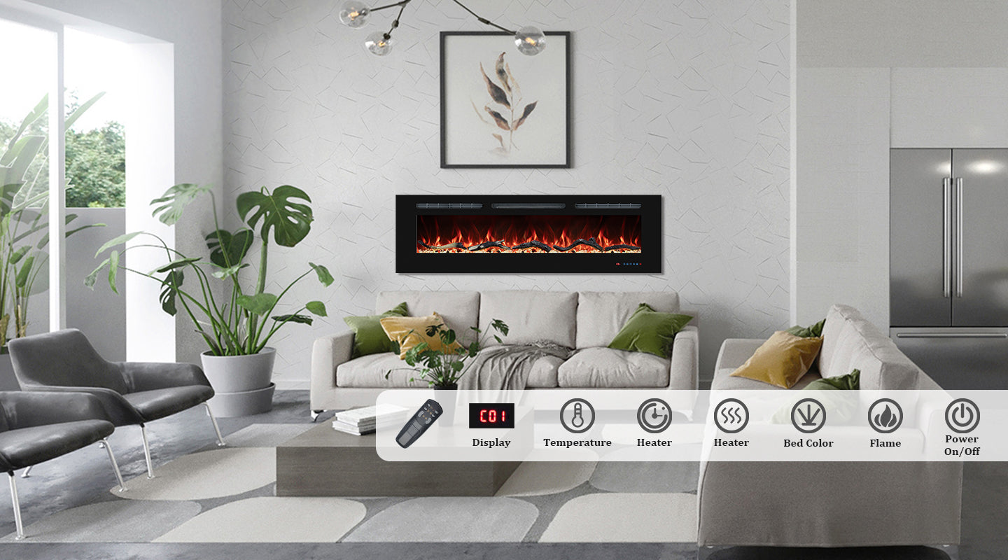 45 inch Recessed&Wall-Mounted Electric Fireplace with Multi-Color Flame,Log&Crystal